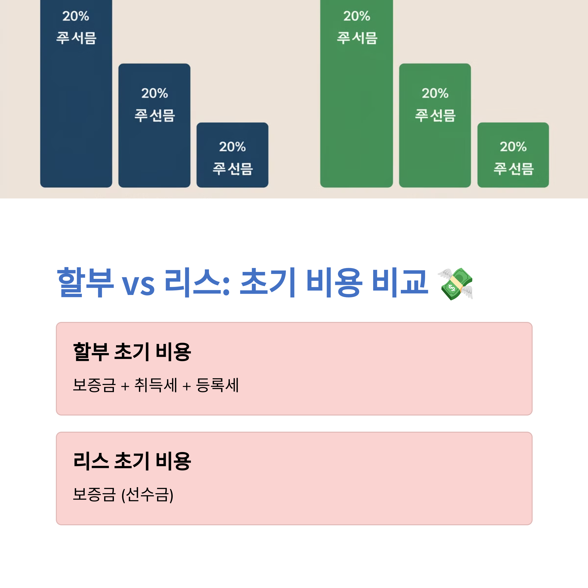 | 초기 비용 | 보통 20~30% 선수금 | 선수금 선택 가능 |